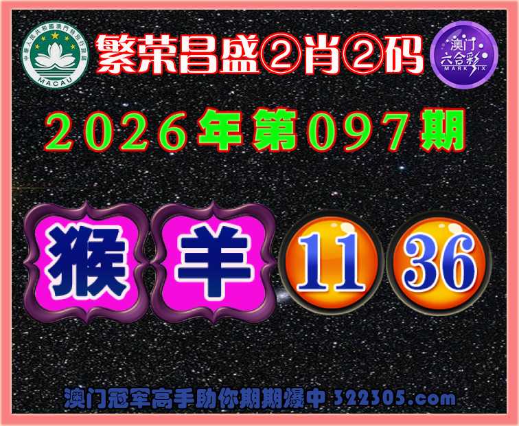 097期:〖繁荣昌盛〗 🏅②肖②码🏅【猴羊】【11.36】开:猴11准
