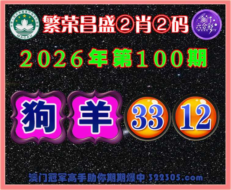 100期:〖繁荣昌盛〗 🏅②肖②码🏅【狗羊】【33.12】开:狗33准