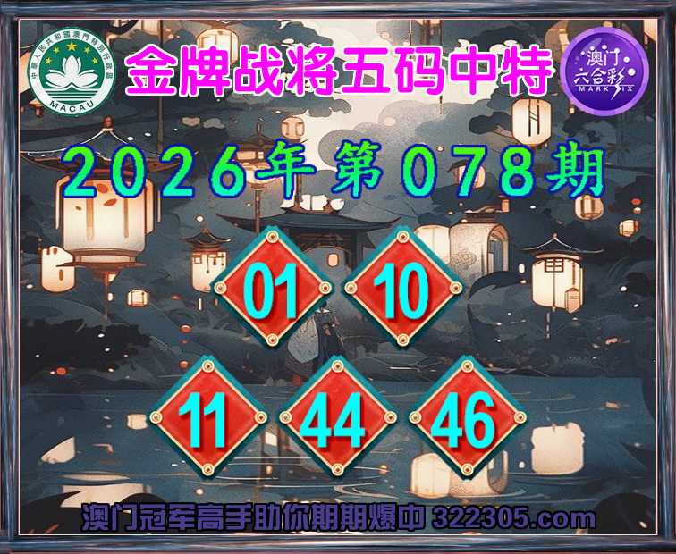 078期:《金牌战将》 ♣️五码中特♣️【01.10.11.44.46】开:46准