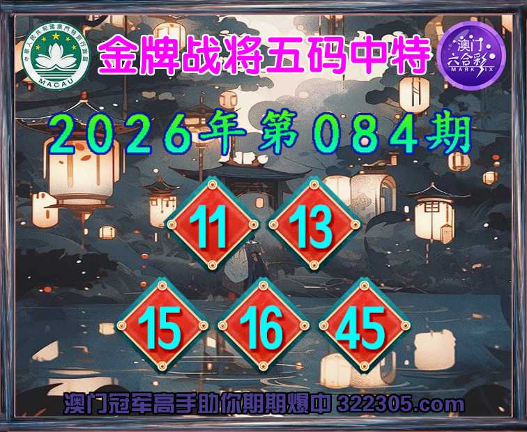 084期:《金牌战将》 ♣️五码中特♣️【11.13.15.16.45】开:16准