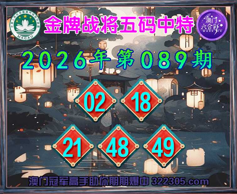 089期:《金牌战将》 ♣️五码中特♣️【02.18.21.48.49】开:49准