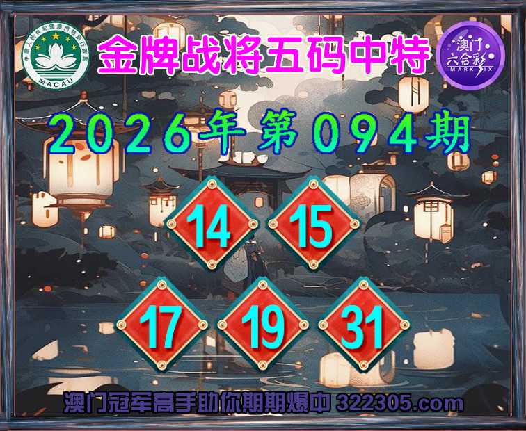 094期:《金牌战将》 ♣️五码中特♣️【14.15.17.19.31】开:17准