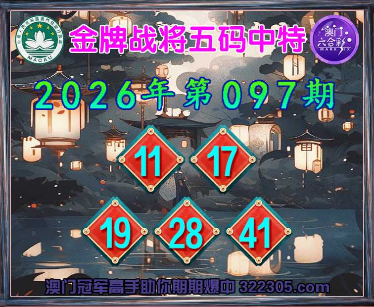 097期:《金牌战将》 ♣️五码中特♣️【11.17.19.28.41】开:11准