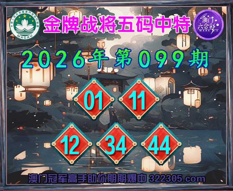 099期:《金牌战将》 ♣️五码中特♣️【01.11.12.34.44】开:12准