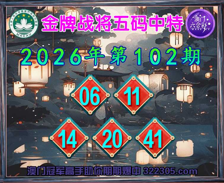 102期:《金牌战将》 ♣️五码中特♣️【06.11.14.20.41】开:20准