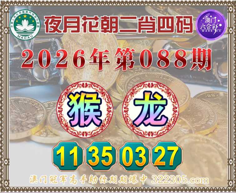 088期: 🤩『夜月花朝』 🤩二肖四码🤩【猴龙】【11.35.03.27】开:龙27准