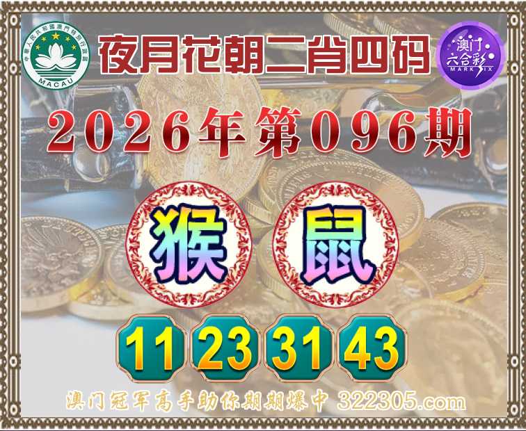 096期: 🤩『夜月花朝』 🤩二肖四码🤩【猴鼠】【11.23.31.43】开:鼠43准