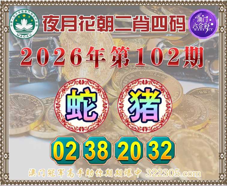 102期: 🤩『夜月花朝』 🤩二肖四码🤩【蛇猪】【02.38.20.32】开:猪20准