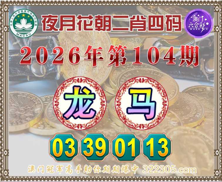 104期: 🤩『夜月花朝』 🤩二肖四码🤩【龙马】【03.39.01.13】开:马01准