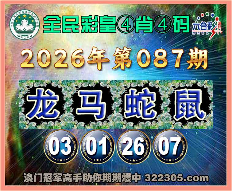 087期:『全民彩皇』 🍀④肖④码🍀【龙马蛇鼠】【03.01.26.07】开:蛇26准