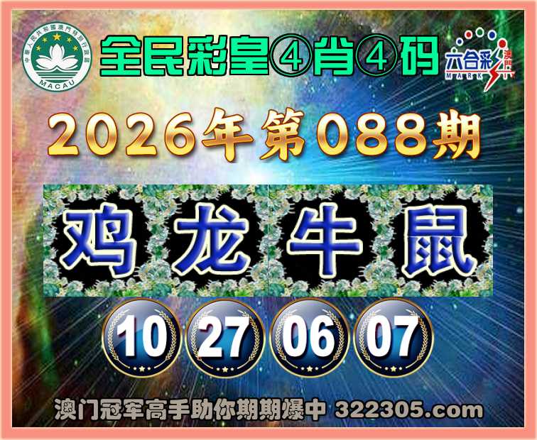 088期:『全民彩皇』 🍀④肖④码🍀【鸡龙牛鼠】【10.27.06.07】开:龙27准