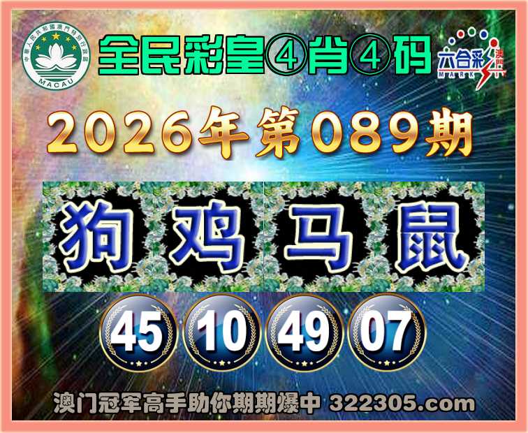 089期:『全民彩皇』 🍀④肖④码🍀【狗鸡马鼠】【45.10.49.07】开:马49准