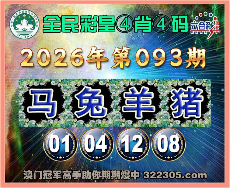 093期:『全民彩皇』 🍀④肖④码🍀【马兔羊猪】【01.04.12.08】开:兔40准