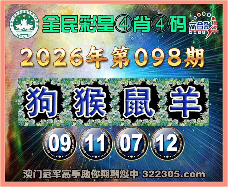 098期:『全民彩皇』 🍀④肖④码🍀【狗猴鼠羊】【09.11.07.12】开:虎17错