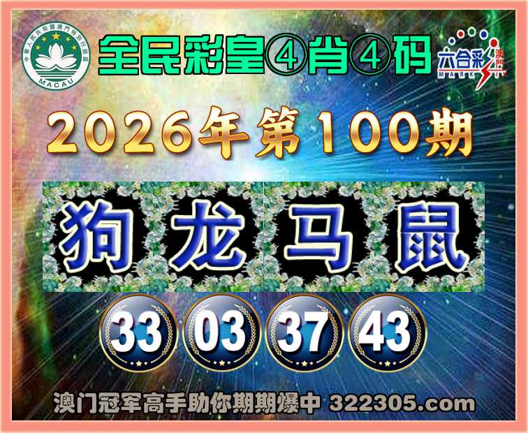 100期:『全民彩皇』 🍀④肖④码🍀【狗龙马鼠】【33.03.37.43】开:狗33准