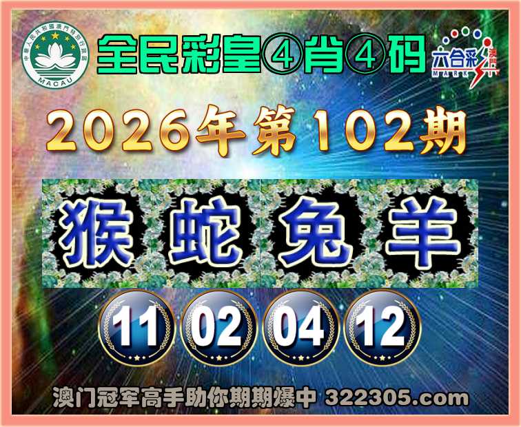 102期:『全民彩皇』 🍀④肖④码🍀【猴蛇兔羊】【11.02.04.12】开:猪20错