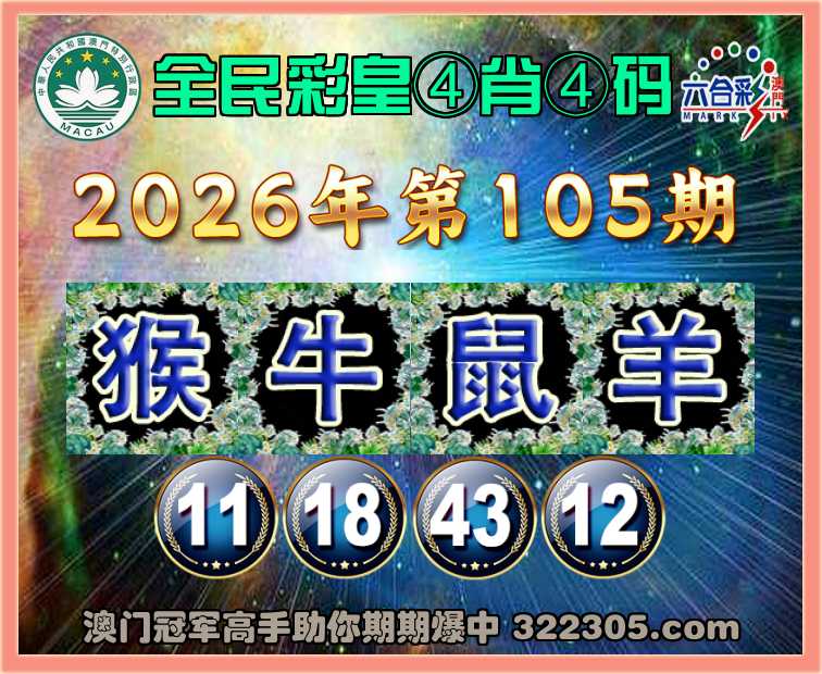 105期:『全民彩皇』 🍀④肖④码🍀【猴牛鼠羊】【11.18.43.12】开:00准
