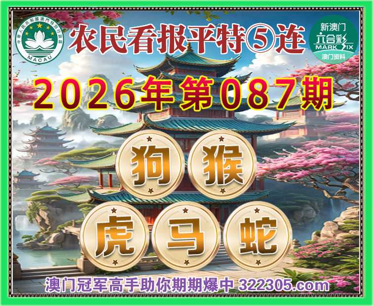 087期:〖农民看报〗 😍平特⑤连😍【狗猴虎马蛇】开:狗21,猴47,虎17,马01,蛇26准
